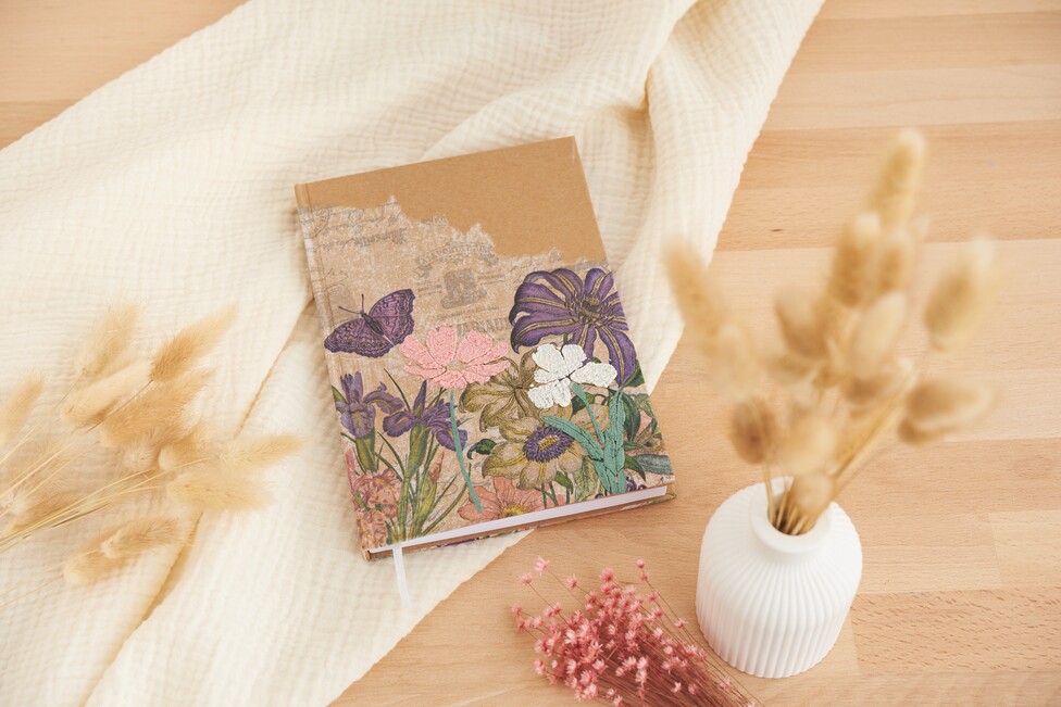 Per una finitura di particolare effetto, può riscaldare la mousse essiccata con un essiccatore per goffratura. Il calore fa sì che la mousse si gonfi e formi un'affascinante texture simile a una schiuma. L'effetto non è solo visivamente attraente, ma conferisce anche al suo notebook una sensazione molto speciale.