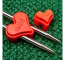 Il cuore più piccolo è adatto alle dimensioni dell'ago da 1,5 a 5,0 mm, mentre il cuore più grande è adatto alle dimensioni dell'ago da 5,5 a 10,0 mm. Ciò significa che può fissare i punti in modo sicuro sia con aghi da maglia tradizionali che con aghi a doppia punta. Questo è particolarmente pratico quando lavora a maglia in viaggio o quando passa da un progetto all'altro e non vuole che i suoi aghi da maglia volino nel bagaglio.