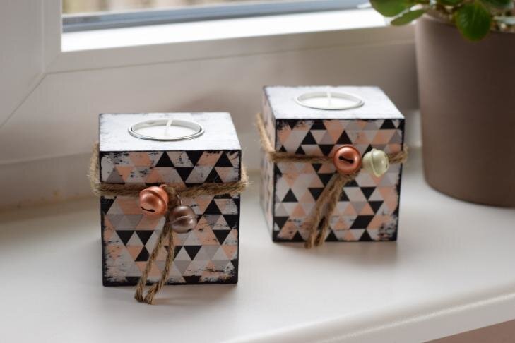 4. Decorazione Infine, i cubi tealight possono essere decorati a piacere, ad esempio con dello spago di juta, delle campanelle decorative o dell'inchiostro per timbri per un look shabby.
