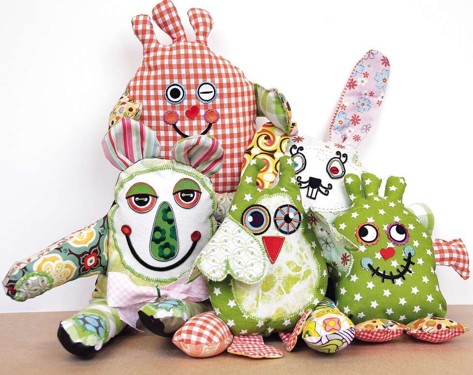Preparazione / cucitura Se si desidera applicare al corpo un'altra stoffa, ad esempio per mettere in risalto una zona del viso o del ventre in un colore diverso, è necessario farlo prima di cucire insieme i pezzi del cartamodello. A tale scopo, si consiglia di utilizzare lo stabilizzatore per ferro da stiro. Questo viene applicato sul pezzo di tessuto da applicare secondo le istruzioni, stirato sul taglio del tessuto nel punto desiderato e cucito lungo il bordo del tessuto con un ricamo a zig zag. Cucire tutti i pezzi del modello, come braccia, gambe, orecchie o ali, prima con i lati destri uniti utilizzando un punto dritto. Assicurarsi assolutamente di non cucire le aperture di tornitura segnate sui pezzi del cartamodello. Si consiglia di tagliare con le forbici il margine di cucitura nell'area di tutte le curve a una distanza di circa 1 cm, in modo che la stoffa si adagi meglio dopo la tornitura e non si appallottoli. Ora girate queste parti attraverso l'apertura rimanente e imbottitele con l'ovatta come desiderate. Posizionare le braccia, le orecchie o le ali sul lato destro di un pezzo del cartamodello in modo che si trovino nella posizione desiderata. Posizionare la controparte del modello del corpo sopra (lato destro verso il basso) e appuntare tutto insieme. Si consiglia di utilizzare l'area inferiore dove in seguito si inseriranno le gambe come apertura per la tornitura del corpo. Non cucite ancora quest'area. Se avete cucito il corpo con un punto dritto, tagliate con le forbici tutte le curve del corpo a una distanza di circa 1 cm. Quindi girate il corpo attraverso l'apertura di tornitura. A questo punto è possibile posizionare il viso preferito sul corpo e stirarlo secondo le istruzioni per fissarlo. In alternativa, si può usare anche la colla per tessuti. Successivamente, imbottire il corpo con l'ovatta. Posizionate le estremità superiori delle zampe imbottite nell'apertura di tornitura, fissate l'apertura con alcuni spilli in modo che non si muova durante la successiva cucitura e cucite l'area in un colpo solo. Il vostro mostro di peluche fai da te è pronto!