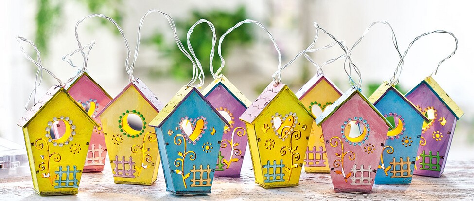 Questo bellissimo filo di luci è composto da casette di legno. Con le sue calde luci LED, crea un'atmosfera accogliente ed è un'ottima decorazione. Poiché le casette sono in legno grezzo, sono ideali per essere dipinte con colori vivaci.