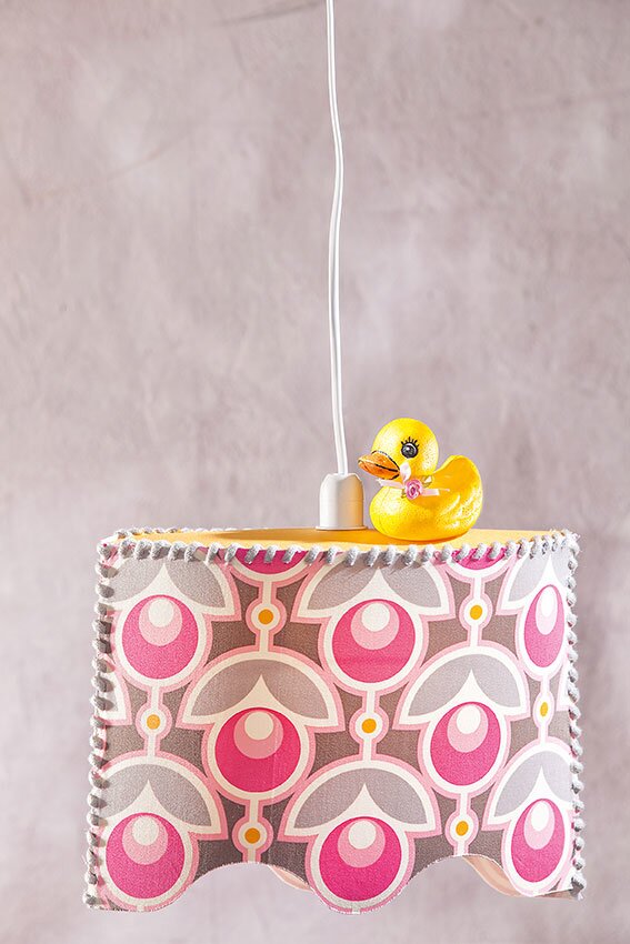 Una lampada molto variabile viene creata da un semplice taglio utilizzando una pellicola autoadesiva per lampade. La pellicola viene ricoperta di tessuto e cucita insieme ai bordi. È un gioco da ragazzi ed è estremamente versatile.