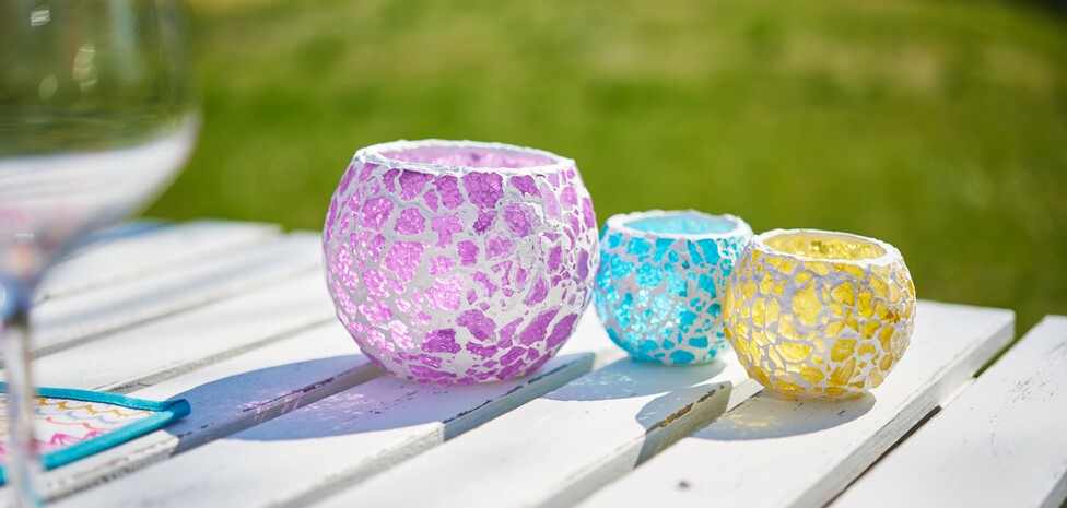 Infine, passare la superficie con una spugna leggermente umida per rimuovere l'eccesso di stucco. Lasciate asciugare bene il tutto, mettete una luce nel bicchiere e godetevi la vostra nuova decorazione estiva.