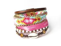 Die Schmuckideen auf den Bildern stammen aus dem Buch "Emotionz". Hier gibt es weitere phantasievolle Kombinationen für die farbenfrohen Armbänder. Die Anleitungen veranschaulichen wie eine wunderschöne Komposition aus geflochtenem, geknüpftem und mit Perlen aufgefädeltem Armschmuck selbst angefertigt werden kann. Zu dem Buch erhaltet ihr 20 bedruckte Satinbänder mit Botschaften und Wünschen wie „Energy“, „Joy“ oder „Love“.