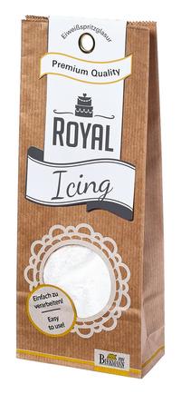 Royal Icing wird mit Eiweiß hergestellt. Dadurch kann man mitRoyal Icing auch besonders gut Verzierungen und Gebäckteile kleben oder feine Ornamente spritzen und zeichnen. Es härtet glänzend aus und kann mit Lebensmittelfarben gemischt werden.