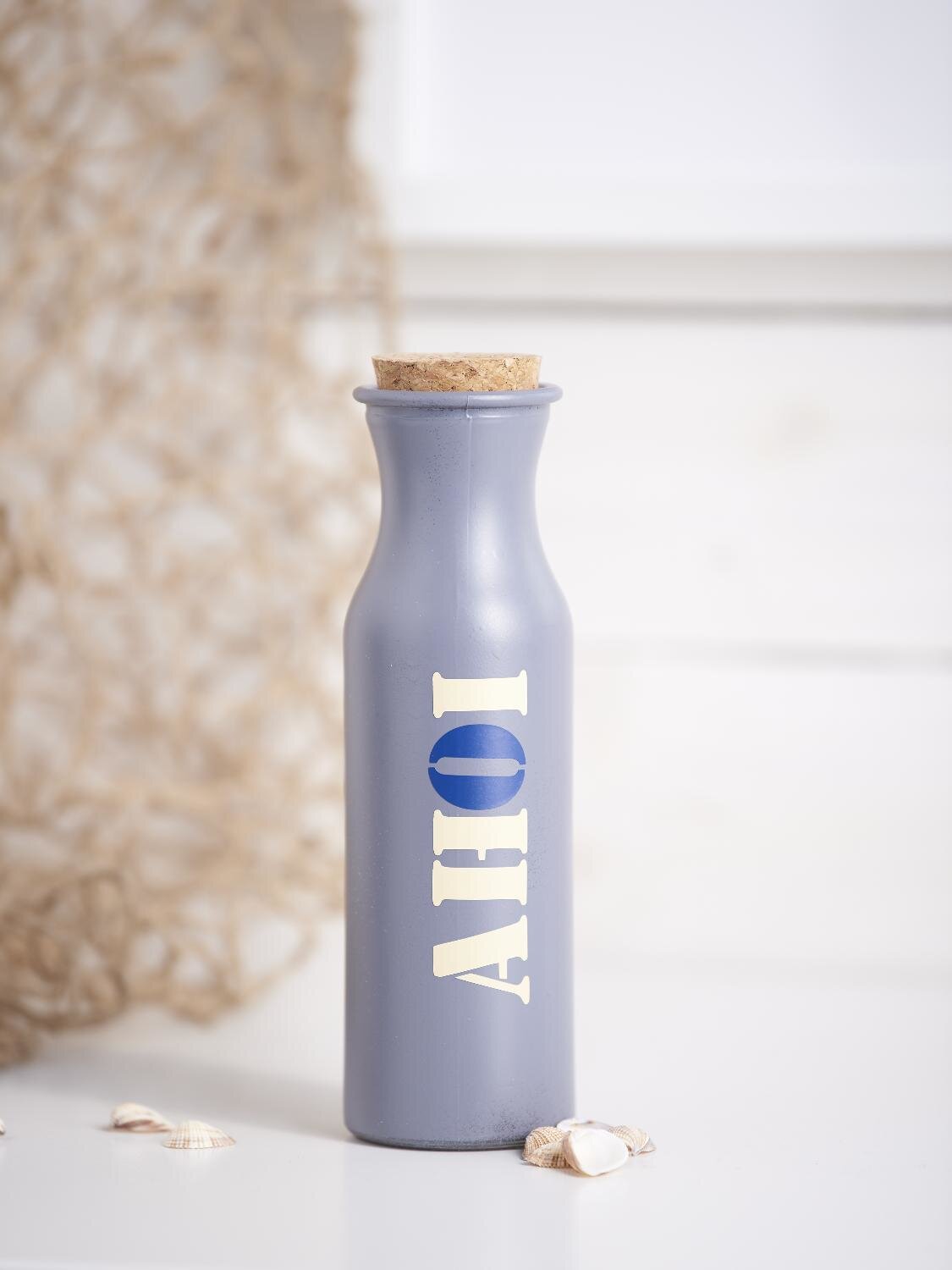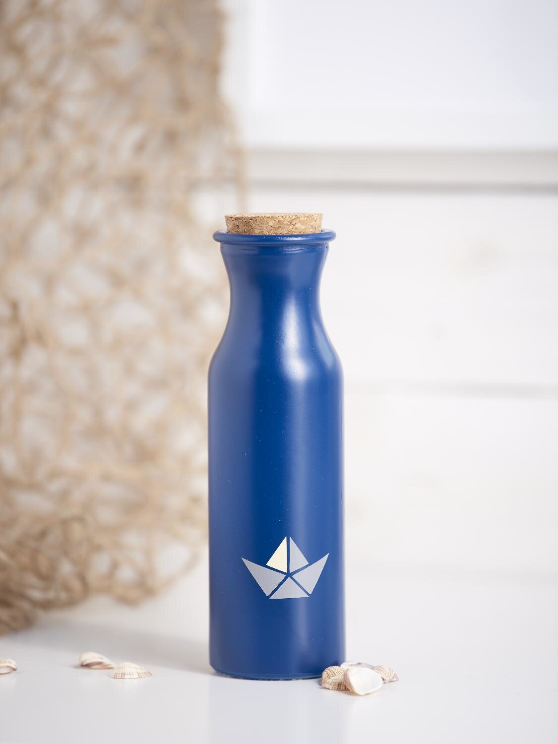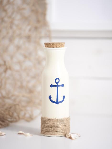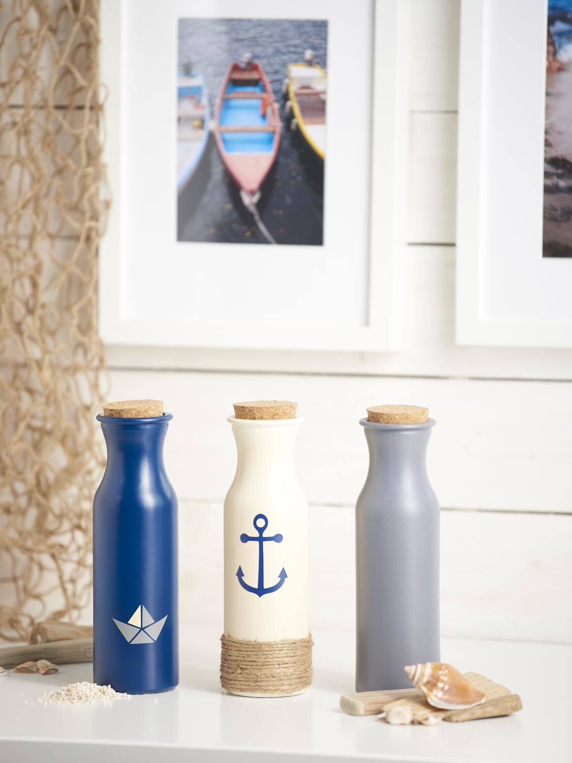 macchina plotter per stampare motivi marittimi secondo il vostro gusto personale su una pellicola vinilica autoadesiva e posizionateli sulle bottiglie di vetro colorate ed essiccate.