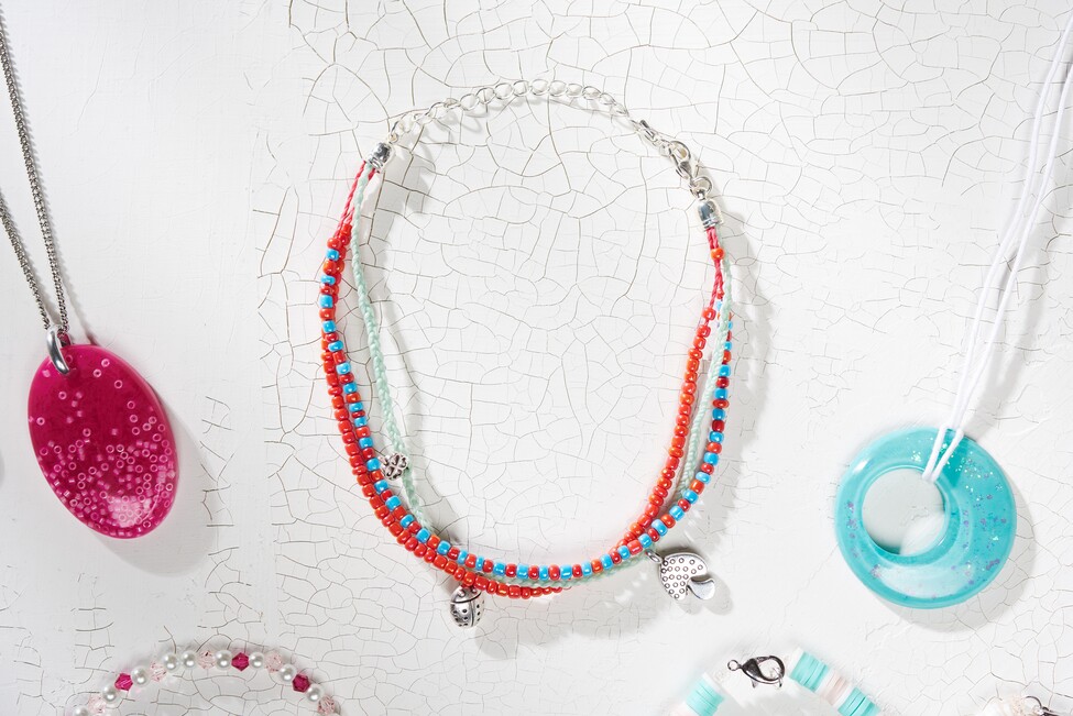 Iniziare infilando piccole perline Rocaille su due cordoncini di micro macramé. La lunghezza dei cordoncini deve corrispondere all'incirca alla circonferenza del polso (lasciate i cordoncini con le perline un po' più lunghi piuttosto che troppo corti).