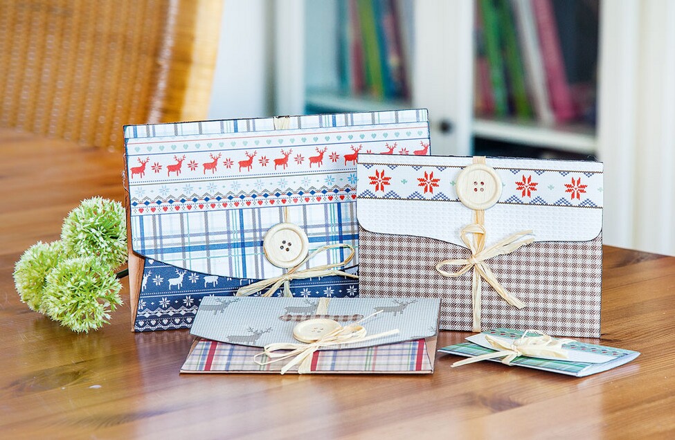 Personalizzate la vostra posta natalizia e consegnate il vostro biglietto di auguri in una busta autoprodotta. Grazie al modello, la forma è garantita e la carta dal design invernale offre un'ampia scelta con i suoi numerosi motivi. La decorazione con rafia e il bottone si armonizzano con lo stile della carta. Gli stencil del set "London" sono adatti anche ad altri formati, come ad esempio una busta per voucher.