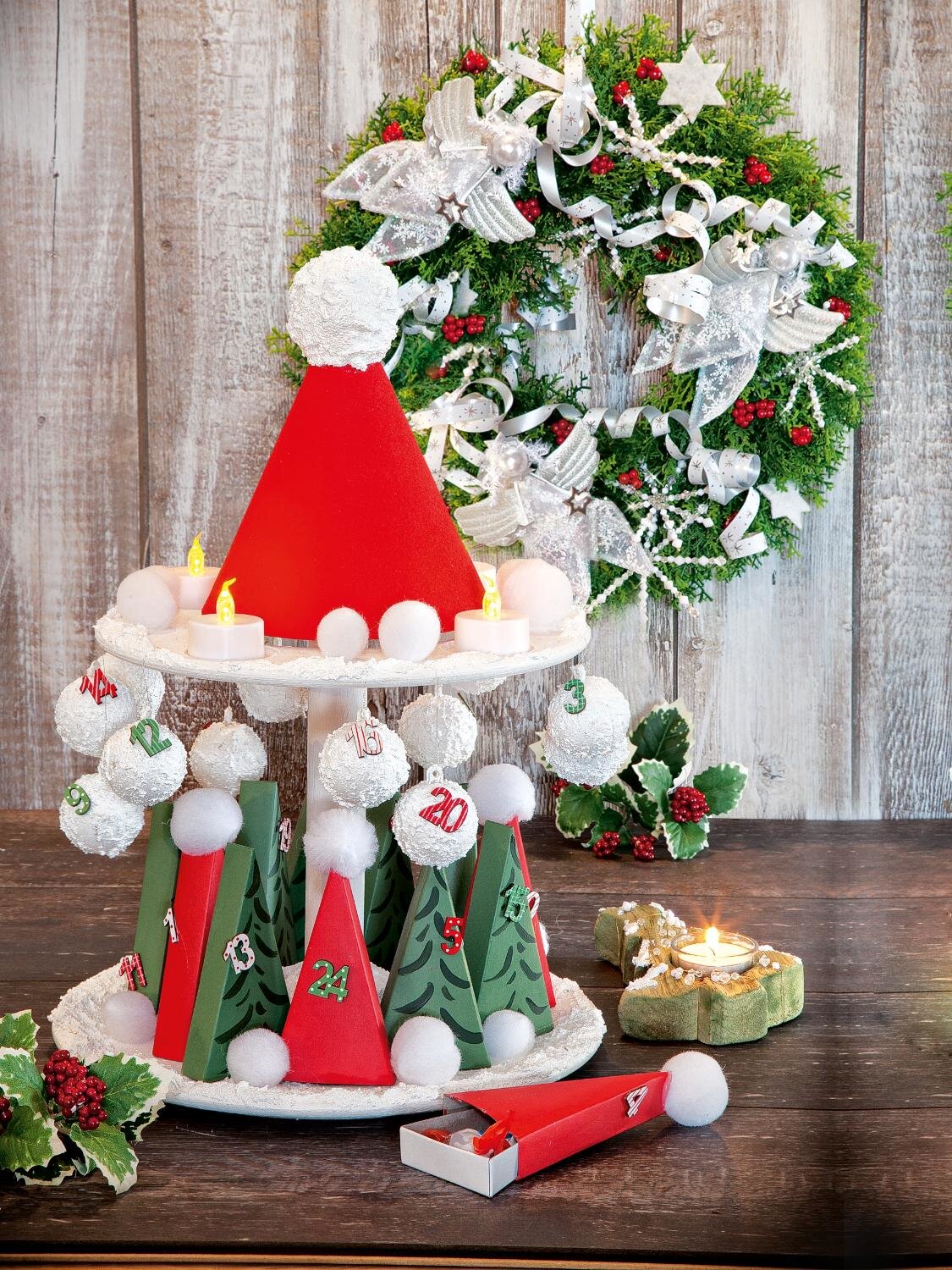 Attaccare i  numeri del calendario dell'Avvento alle scatole e alle decorazioni con la colla a caldo.