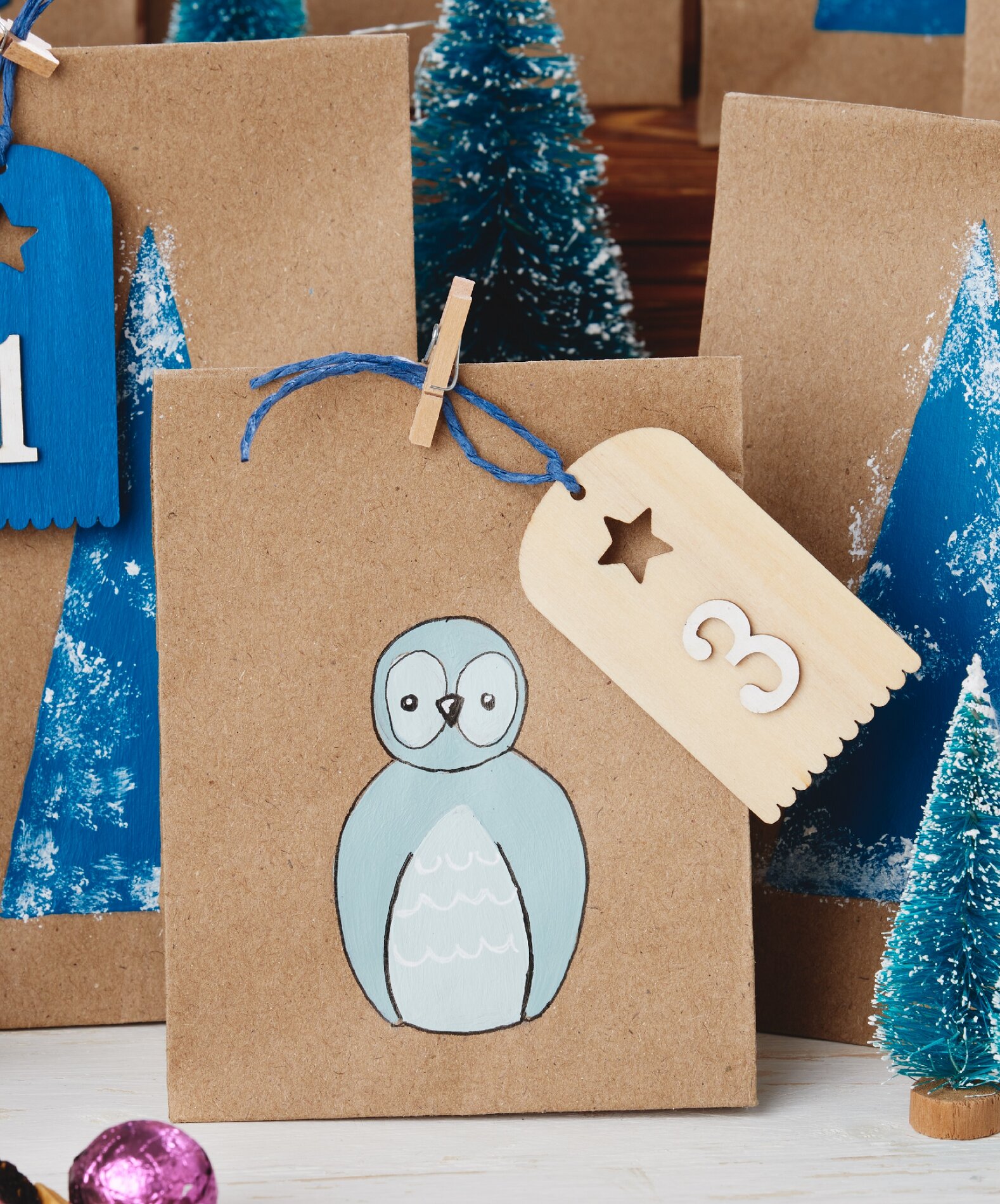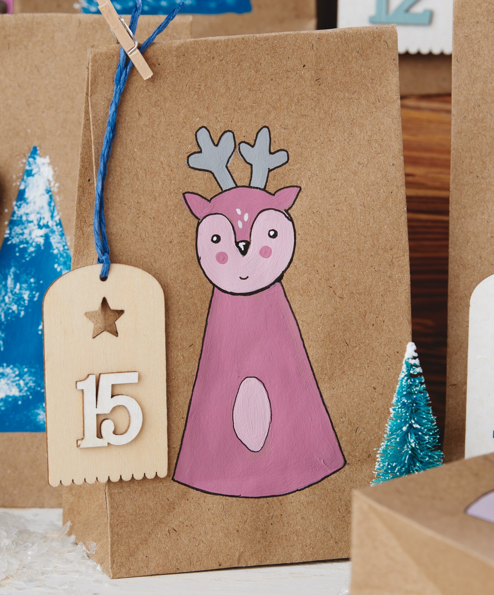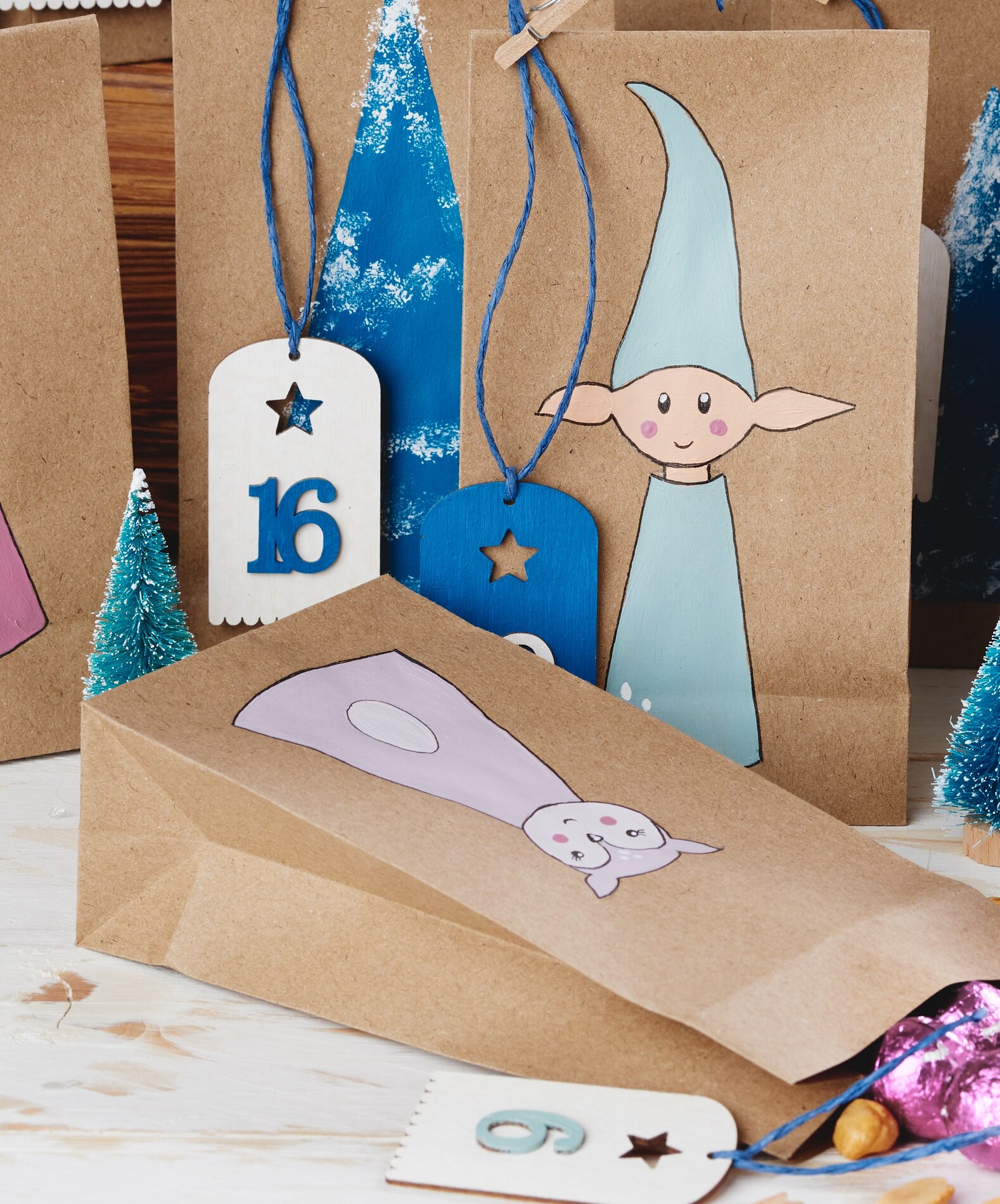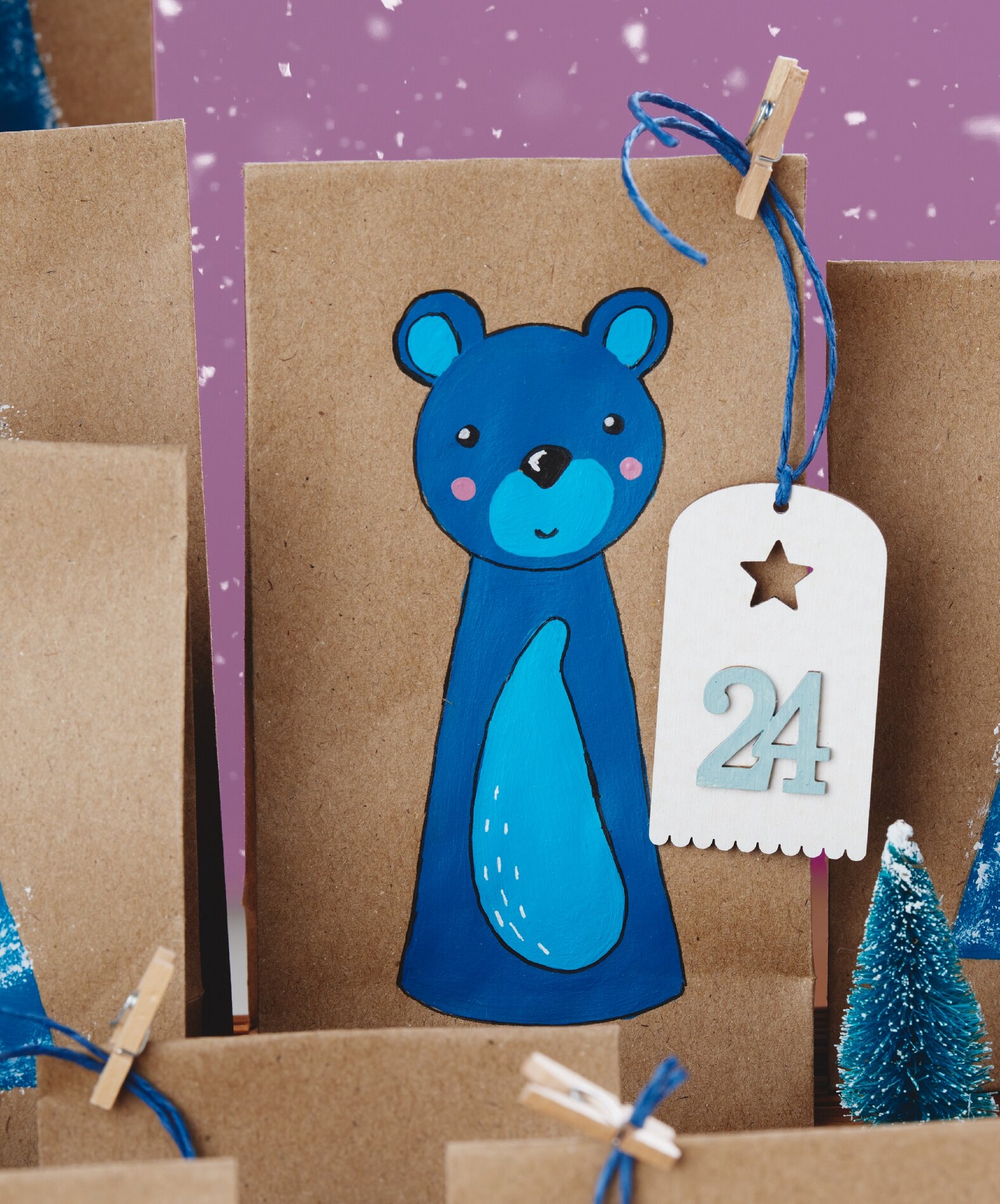 Un calendario dell'Avvento fatto in casa addolcisce la lunga attesa della vigilia di Natale. Con queste istruzioni per il bricolage, potete realizzare il vostro grazioso calendario dell'Avvento con sacchetti di carta. Questo è stato dipinto con simpatiche figure e abeti. È facile da realizzare con il nostro modello di motivo gratuito.