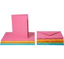 Biglietti doppi colorati con buste "Colori vivaci", 100 pezzi in formato A6. Tutti dovrebbero avere questo set di biglietti di base in colori vivaci nella loro scatola di artigianato. Questa confezione economica contiene 50 biglietti doppi con buste abbinate in 5 colori diversi.