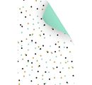 Questo cartoncino con motivo "Puntini di menta" misura circa 50 x 70 cm e ha una grammatura di circa 250 g/m². Il cartoncino artigianale è stampato su un lato con puntini nei colori menta, oro e nero su sfondo bianco. Il retro è coordinato con il colore menta.