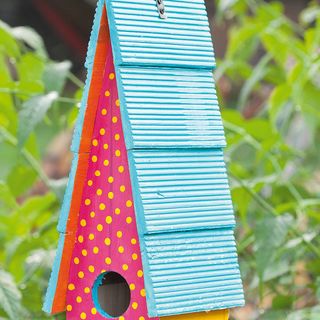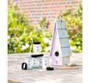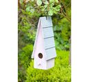 Dare una casa agli uccelli autoctoni! La casetta per uccelli ha una forma insolita grazie al suo tetto ribassato e a gradini, che la rende anche imponente. È sia un aiuto per la nidificazione degli uccelli che una decorazione per il giardino. La parete posteriore presenta una piccola apertura e la cassetta di nidificazione ha un anello di metallo per essere appesa.