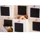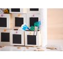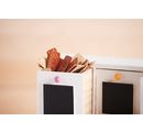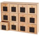 La piccola cassettiera è realizzata in compensato di pino. I 12 cassetti sono larghi circa 6,5 cm, profondi 6 cm e alti 6,2 cm ciascuno. I frontali dei cassetti sono dotati di una superficie di cartone di circa 4,5 x 4,5 cm - perfetta per tenere in ordine le cose!