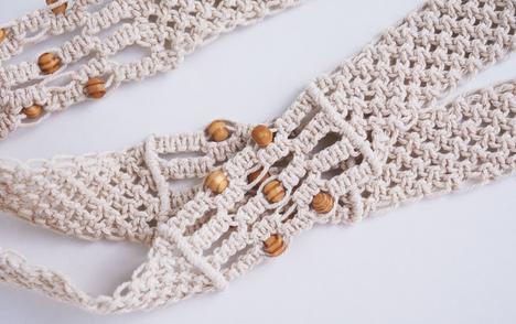 Collegare entrambe le catene annodate con un doppio nodo a rovescio. Tagliare i fili e fissare le estremità con un po' di colla artigianale, se necessario.