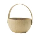 Piccolo cestino pasquale in cartapesta con un diametro di circa 9 cm. Il manico è mobile ed è alto circa 6,5 cm. Il cestino, compreso il manico, è alto 11,5 cm. Ottimo per le piccole sorprese di Pasqua.