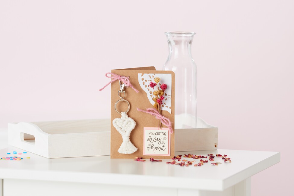 Con questa bella idea, potrete rendere felice la persona amata. Potete usare il biglietto per scrivere alcune parole gentili e regalare il portachiavi per il viaggio.