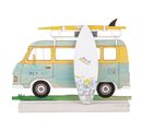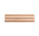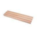 Pratica bacheca con 3 binari realizzata in legno grezzo. La bacheca ha una dimensione di circa 18 x 5 x 1,8 cm. Le guide fresate hanno una profondità di circa 7 mm.
