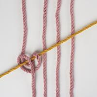 Accorciare le estremità del filo come desiderato e fare un nodo alla base di ogni filo.