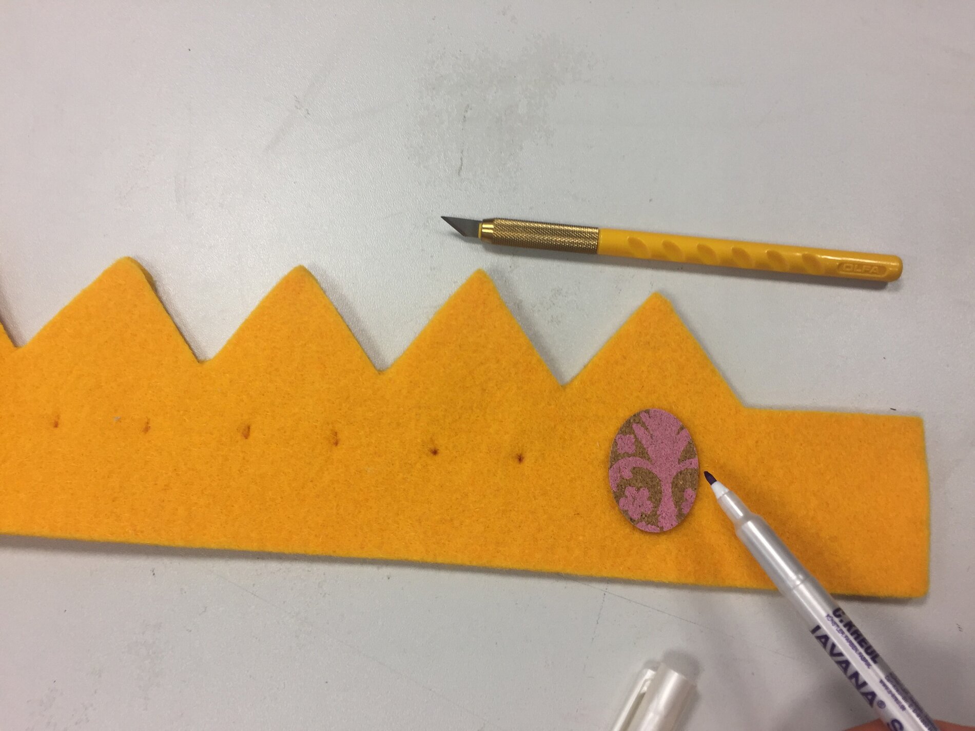 Corona dell'Epifania realizzata con feltro, carta di sughero e filo di ferro piatto