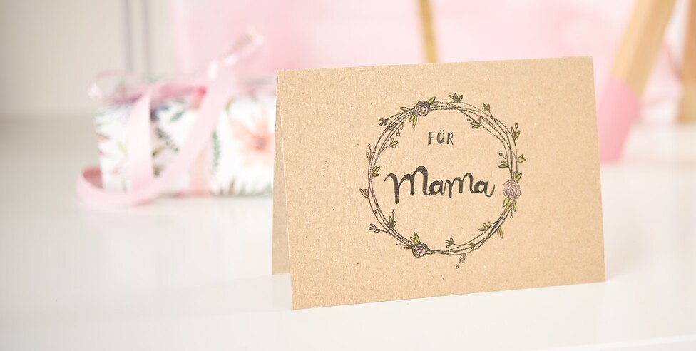 colorata con le matite colorate . Abbiamo anche scritto un testo utilizzando la tecnica del lettering a mano. Un'altra idea è quella di attaccare delle foto e scrivere un piccolo aneddoto - tutto ciò che piace a voi e alla vostra mamma è ovviamente permesso.