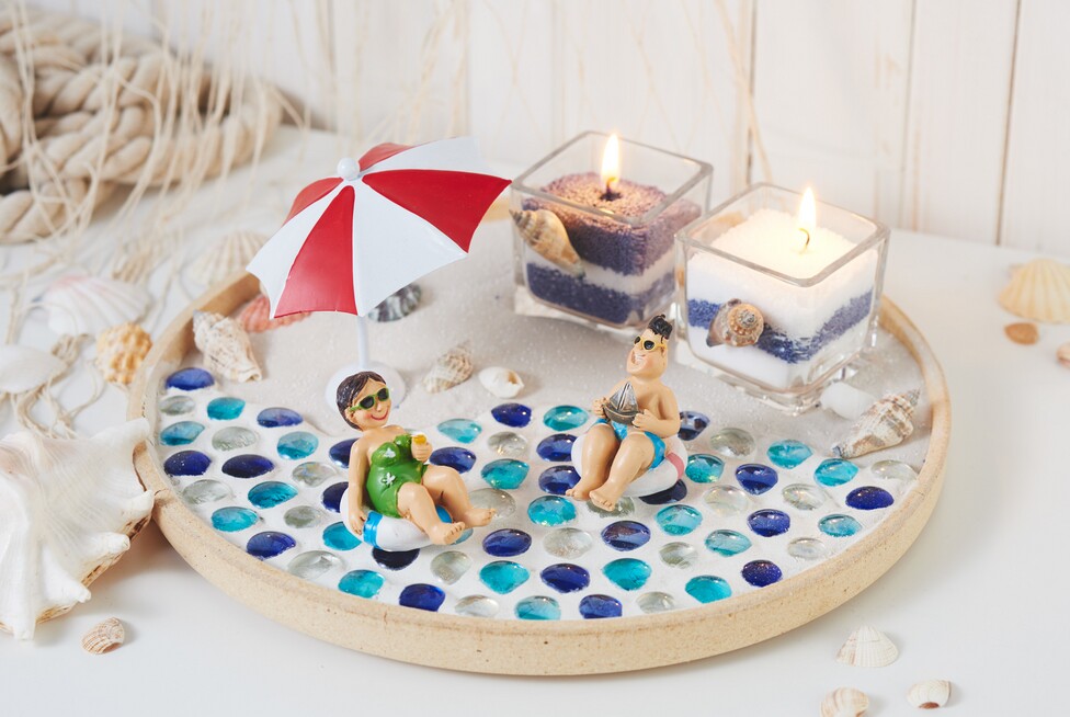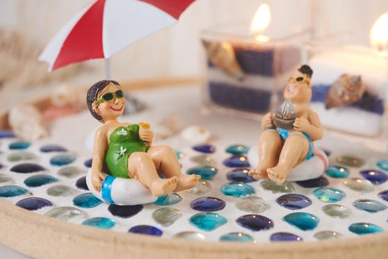 Ora divertitevi a decorare la vostra ciotola Sea Vacations con i piccoli personaggi delle vacanze, un ombrello estivo e graziose conchiglie.