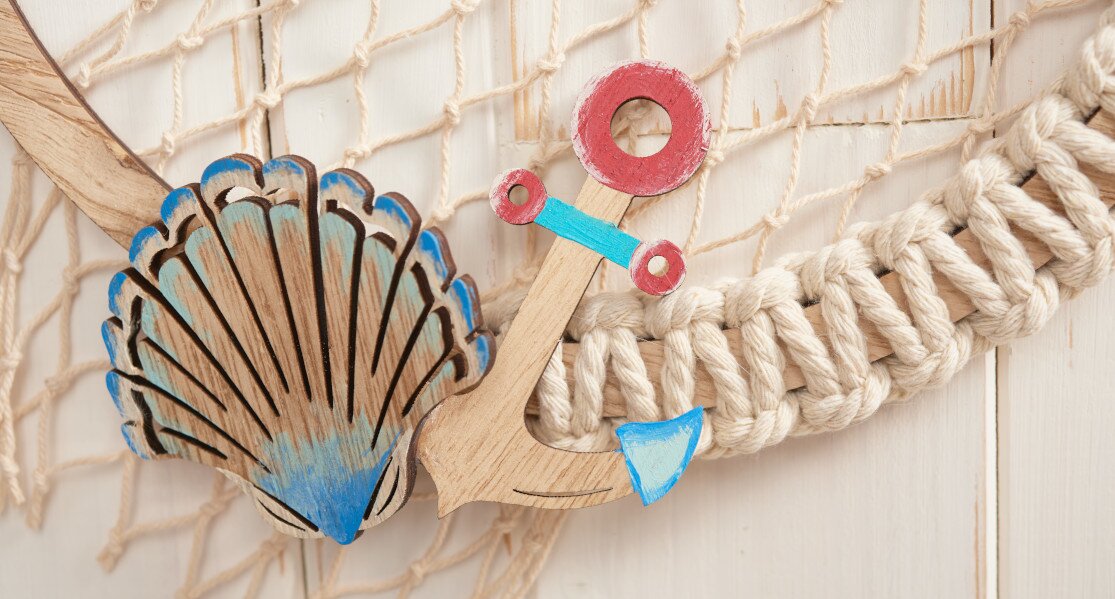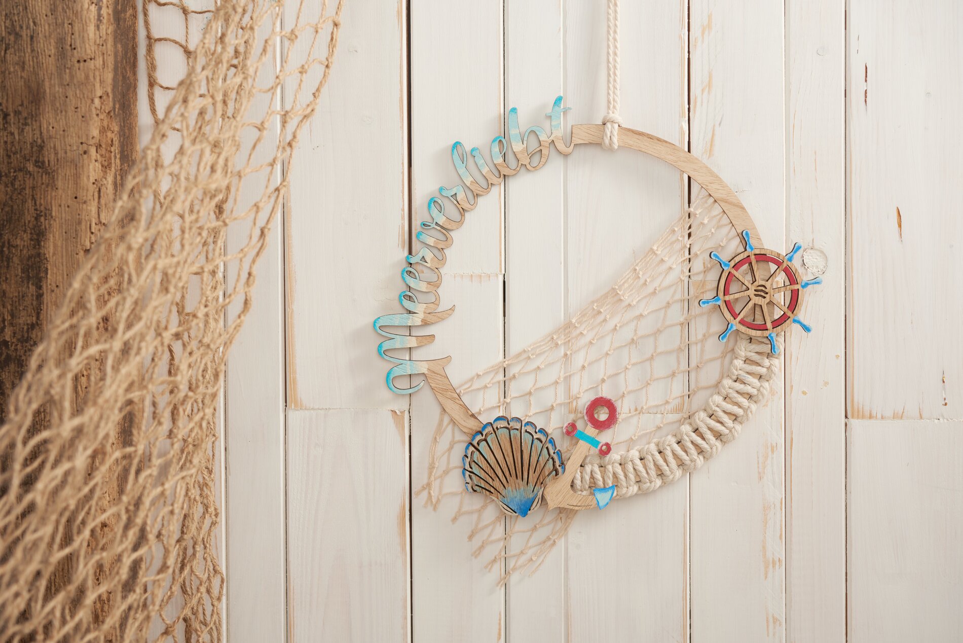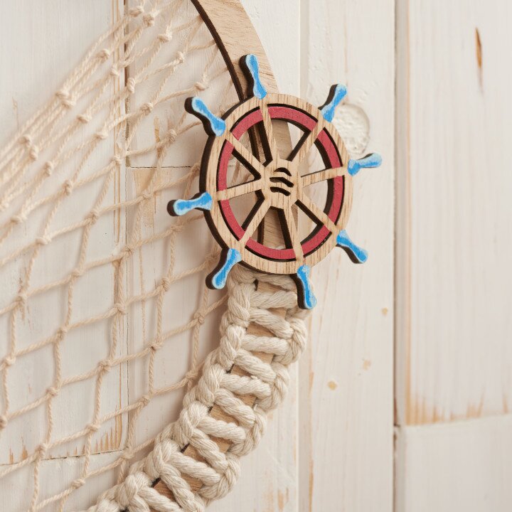 Una parte dell'anello di legno viene legata con un nodo a croce macramé: