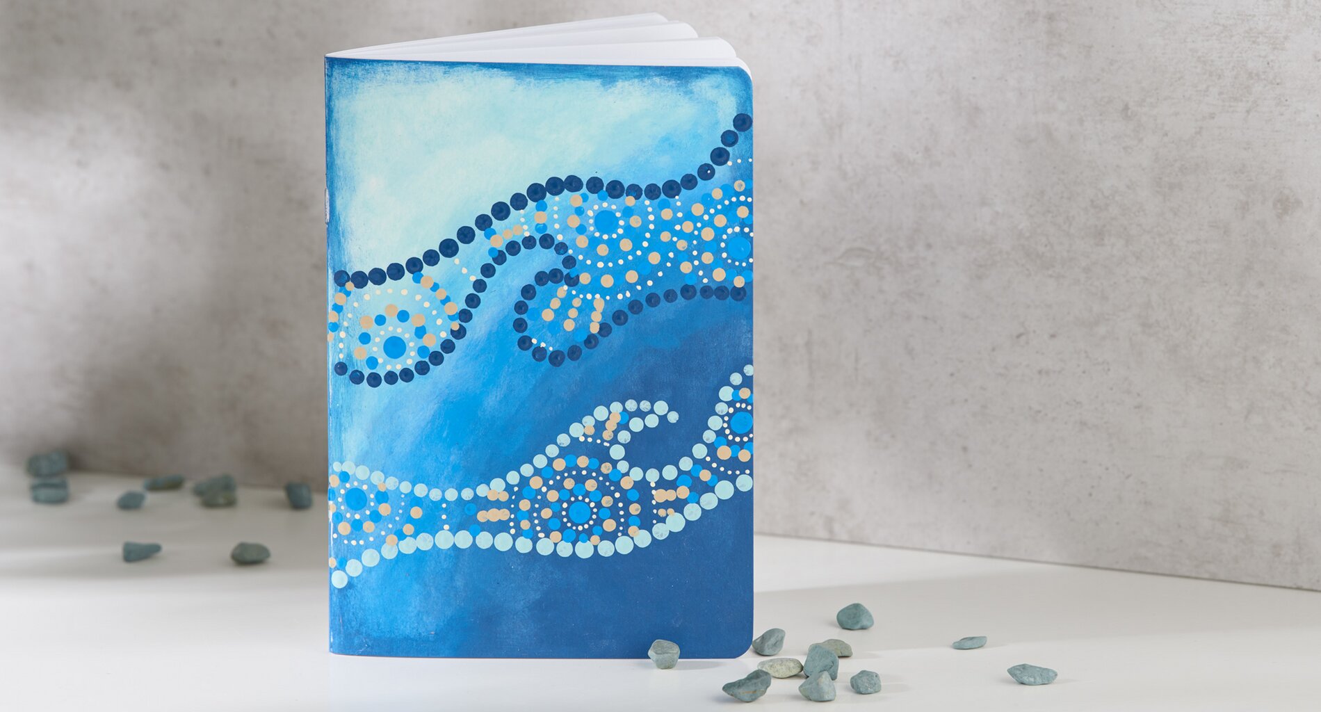 Il quaderno colorato è stato prima disegnato con una sfumatura di colore utilizzando la vernice artigianale. Si può fare in modo semplice e veloce tamponando il colore con una spugna da pittura, con un movimento sfumato.
