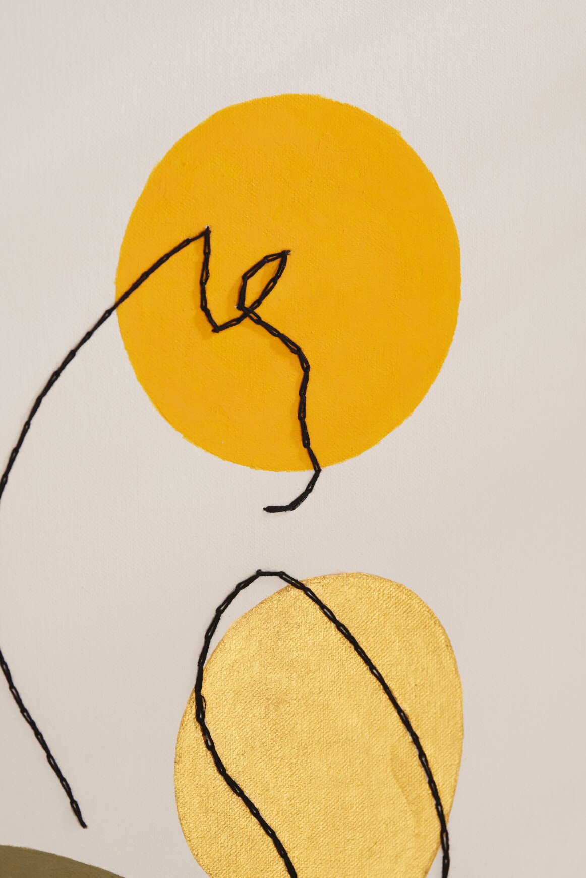This classy mural is a great example of how abstract acrylic painting can be combined with some embroidery. Let our abstract depiction of a cat and a kneeling human inspire you to create your own artwork.