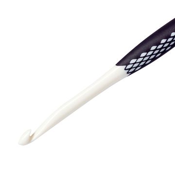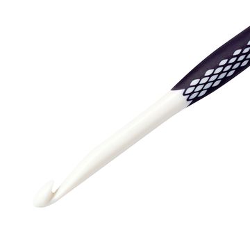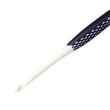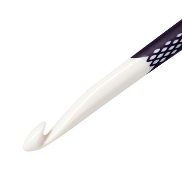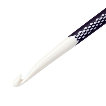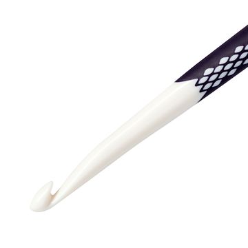 A solid addi wool crochet hook for your Needleworks. Die Crochet hook has a solid nickel plated aluminium hook. The reinforced plastic handle lies comfortably in the hand. The needle size is stamped into the end of the handle. The size of the needle can be easily recognized by the coloured parts of the handle.
