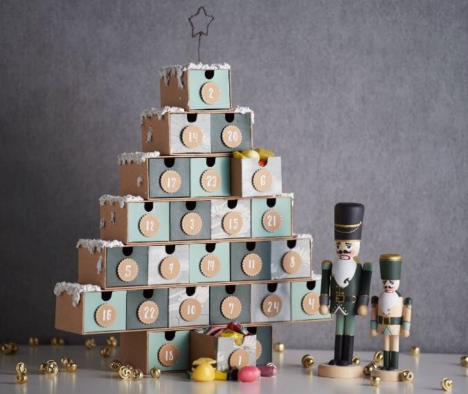 5. Finally, form a star out of wrapping wire. To give it more stability, wrap the wire around the star several times. Use hot glue to fix Advent Calendar the whole thing on top of it. Now only fill it with small treats.