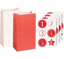 Advent Calendar made easy! With this set you can quickly and easily create a wonderful Advent Calendar. The bags in Red white with white dots and in white with red dots offer plenty of room for small gifts and sweets. A calendar of the modern kind that can be made quickly and easily. If you like, you can add small paper tags, bells, Embellishment and ribbon. So you give this set an individual look