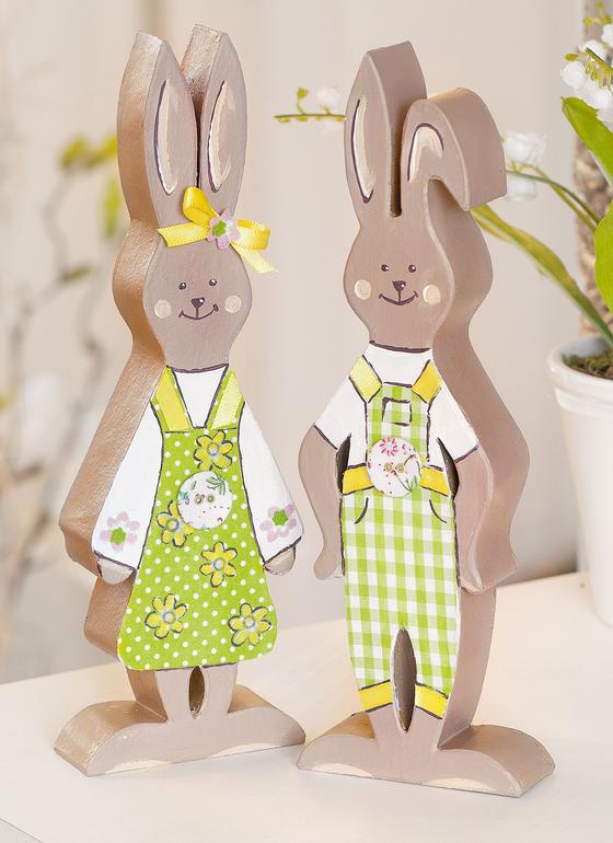 A friendly pair of rabbits, beautifully painted in a delicate spring colour, will certainly bring good spirits and Easter joy into the home. The tinkering and painting of the two is fun and succeeds also untrained easily.