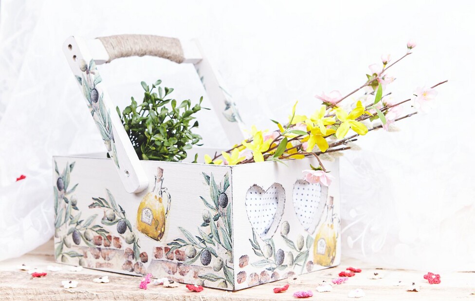 This basket is a successful example of the extraordinary effect of Napkin technique:. With its pretty olive motif it is not only practical but fits optically in the kitchen, in the entrance area as well as on the terrace.