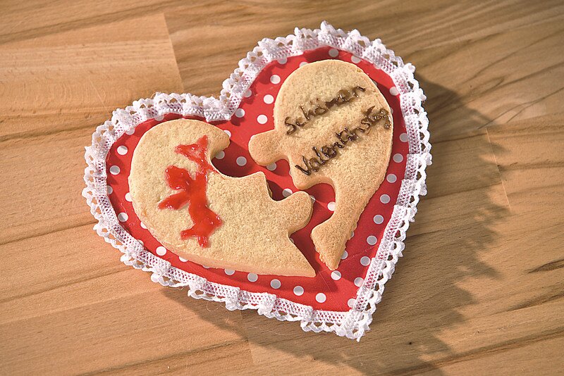 Now stick a pretty lace border around it with tape-Ribbon and you have a very special Valentine's Day present, which also tastes good.