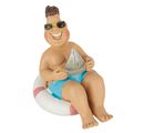 Monsieur enjoys the vacation! A funny figure for great decorations around gift vouchers, holidays, summer and flotsam and jetsam. With just a few hand movements this bathing vacationer becomes a funny eye-catcher. The figure can be combined with a sun lounger, garden grill and other miniatures