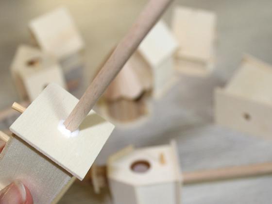 Then glue the short sticks into the holes and let the glue dry completely. It will then become transparent.