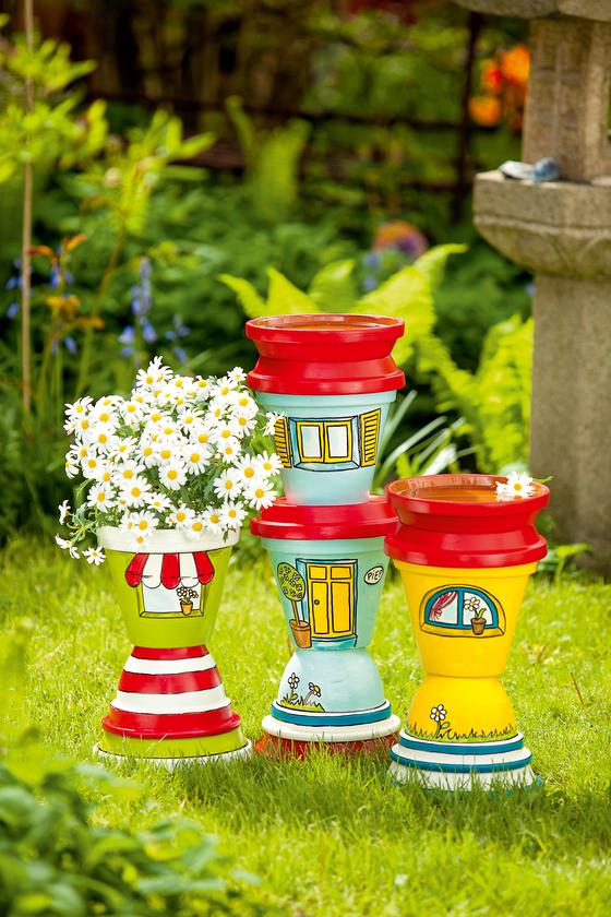Design unusual flower columns and bird watering places according to your personal taste. Colourful and creative painted and ingeniously stacked, the different pots are a Coaster cheerful eye-catcher in your garden.