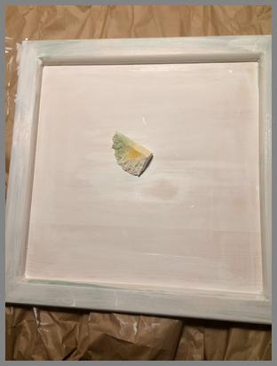Den äußeren Rand des Bilderrahmens, der zuvor mit Chalky Color Antikgrün angemalt wurde, wird nun mit Chalky Color Antikweiß angestrichen. Das lasst ihr nun so ca. 10 Minuten trocknen.