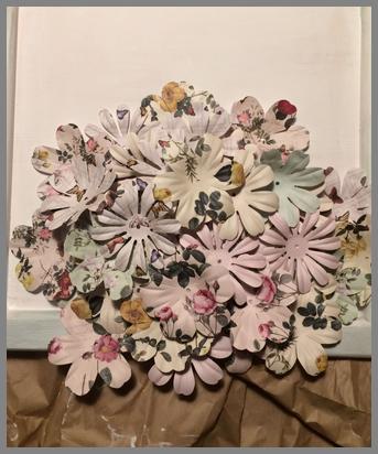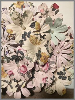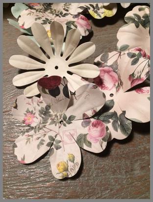 Ein paar Blüten könnt ihr auf den Rand setzen, so sieht es aus, also würden die Papierblumen aus dem Bild gerauslaufen.