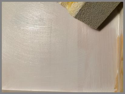Als erstes wird der innere Teil des Bilderrahmens mit Chalky Color Antikweiß eingefärbt. Das macht ihr am besten mit Hilfe eines Schwammes, so lässt sich die Farbe prima auftragen.