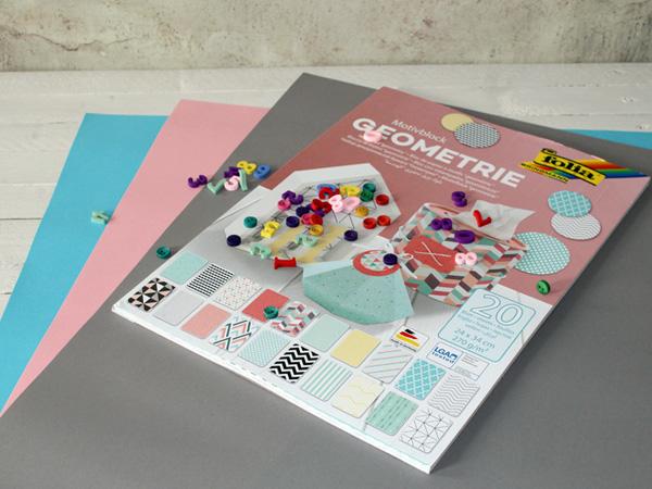 Anschließend klebt ihr die Blenden auf das Papier auf. Achtet darauf, dass die Abstände an den Seiten ungefähr gleich sind. Am Besten klebt es sich mit doppelseitigen Klebeband. Wenn ihr mit Bastelkleber arbeitet, solltet ihr etwas zum Beschweren auflegen, damit sich das Papier beim Trocknungsprozess nicht wellt.