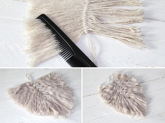 When yours Feathers are finished, comb them out. Depending on the material, different tools are always better suited. Do this until the individual yarn sections are no longer twisted and fall loosely and fluffy. When combing you should always start at the end and then slowly work your way to the middle. That way you will prevent the individual threads from knotting too tightly