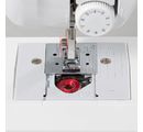 As with all commercially available sewing machines, the thread tension can also be adjusted on this entry-level model and ensures an even stitch pattern. The scope of delivery also includes the jam-free horizontal hook, the automatic winding system and the option of using the sewing machine as a free-arm model for sewing rounded parts (sleeves, trouser legs) by simply removing the accessory compartment. The 6-point feed dog allows effortless guiding and sewing of almost all fabrics.