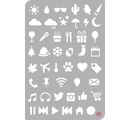 The beautiful Bullet Journal "IconsStencil" has a size of width 12 cm and height 18 cm. The size of the 47 motifs is from 0.7 cm to 1.9 cm.