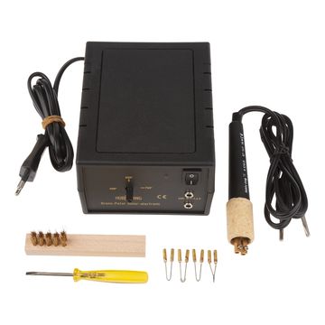 incl. 4 burn mark tips, 7 burn mark stamps, 2 soldering tips, styrofoam knife and filing stand
