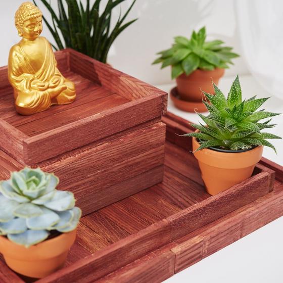 Paint everything with wood stain and leave to dry. Finally, coat everything with VBS acrylic paint.