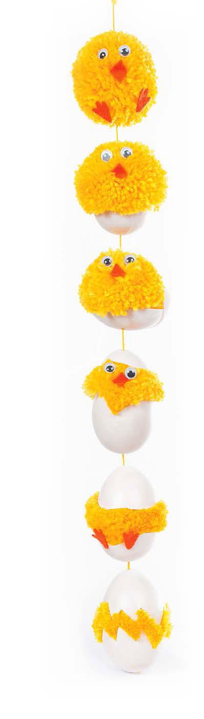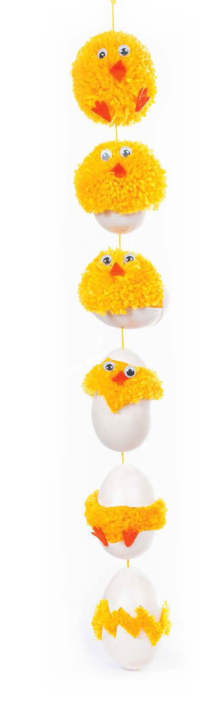 From the egg to the chick - for this funny decoration classical ones made of wool Pompoms are combined with cut open plastic eggs.