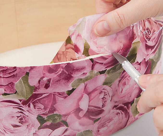 It doesn't matter at all if Décopatch Paper stands over the edges when gluing a box. After drying, these protruding snippets can be removed wonderfully: With a sharp scalpel they are simply cut off, the edge looks so clean.