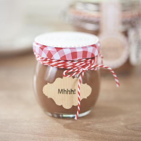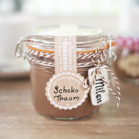 Fill the chocolate dream into a glass with a large opening and then decorate it as you like. You will find a large Selection of decoration material in our assortment, the most important accessories we have put together for you as usual in our material list.